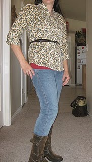 | Teresa from You Made That??? put together this outfit for $0! Can you tell her jeans are unrolled capris? Way to creatively use items you already own! We love it! |