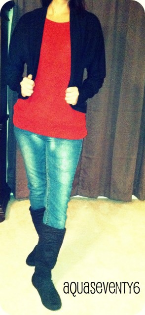 On Monday we posted a few photos of fall fashions from our Pinterest board. Our challenge (and yours) was to create similar looks using only items we already own or have bought second hand. So how did we do with the Red Challenge? You tell us!