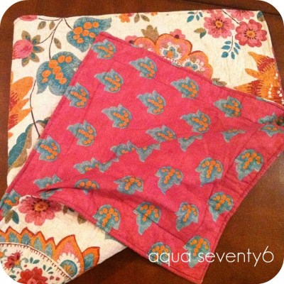 I was shopping at Marshall’s last week with Hubs when he got a call from an old friend. I used this slight distraction to pop into the home section and rummage through the clearance aisle. Sitting there, just waiting to come home with me, was a king-sized, quilted pillow sham in a gorgeous paisley and leaf print for just $3! I didn’t think twice and tossed it into our cart.