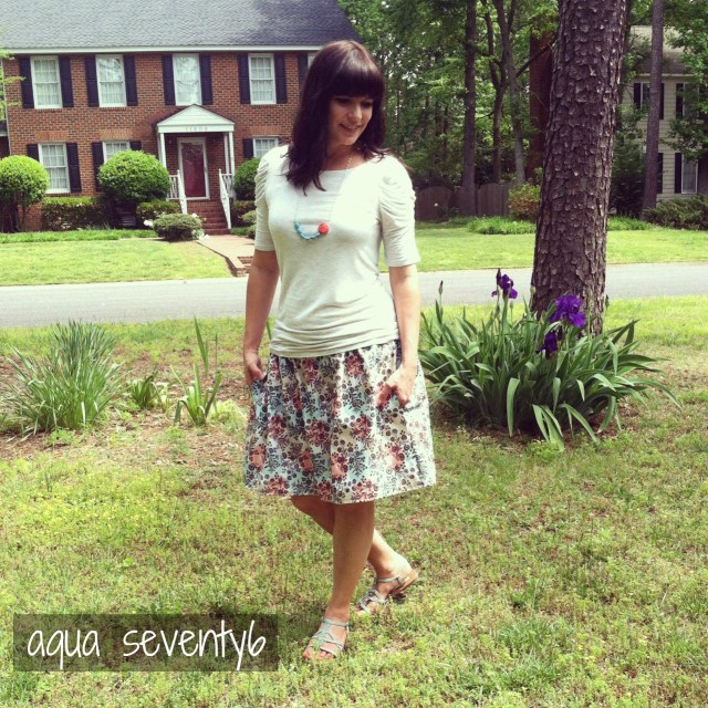 Because it was such a special occasion, I wanted to get out of my uniform (jeans and a tee shirt) and sport a cute skirt I made a couple of weeks ago.