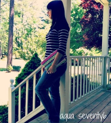 You may have noticed me carrying a sweet new bag in my last post. That is the 2015 version of the AquaSeventy6 Fold-Over Clutch. First launched in Spring 2012, the new versions feature a faux-leather bottom and thicker interfacing for more sturdiness.