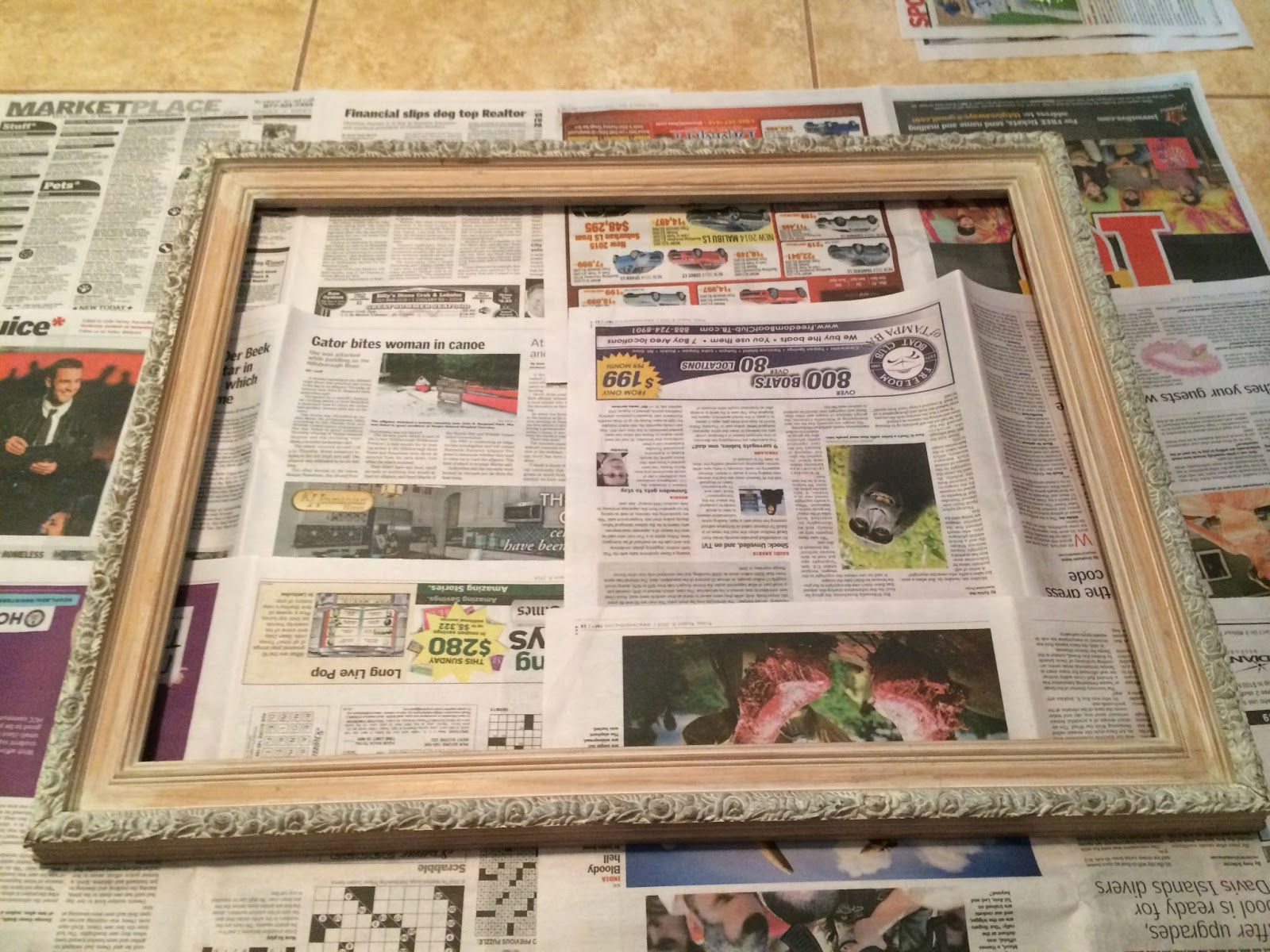 My mother-in-law was giving away an old framed print of a bouquet of flowers. The glass had broken ages ago, and the print was warped and scratched, but the frame still looked great!