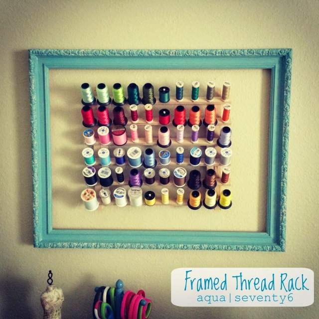 I snatched it up right away, ditched the old print and painted it Annie Sloan Provence. It now hangs around my bare thread rack.