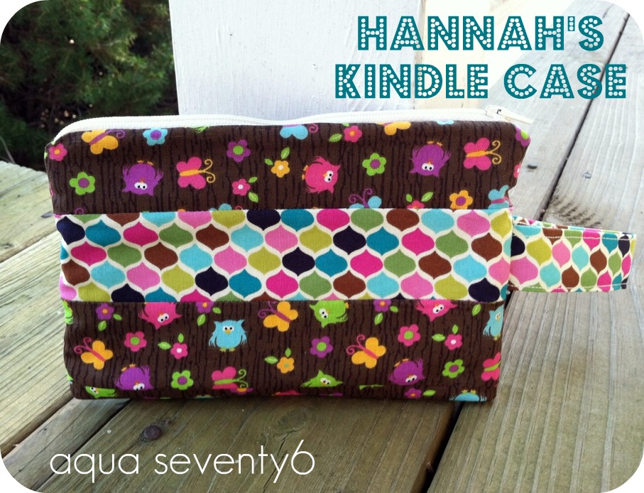 Full Disclosure: This is not Hannah’s actual Kindle Case. Her’s is in the mail. This was an extra one I made for my own daughter who just fell head over heels for this fabric. (Too bad we don’t own a Kindle!) Hannah, your case is a bit bigger! 🙂