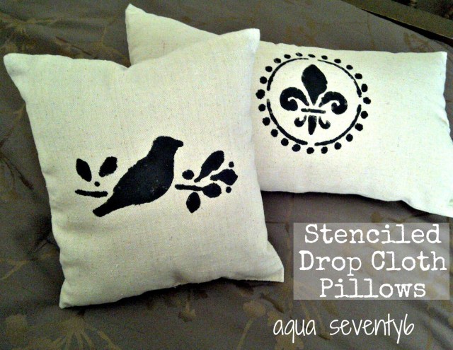 I got the drop cloth in the paint section and stencils and acrylic craft paint in the craft section of Walmart.