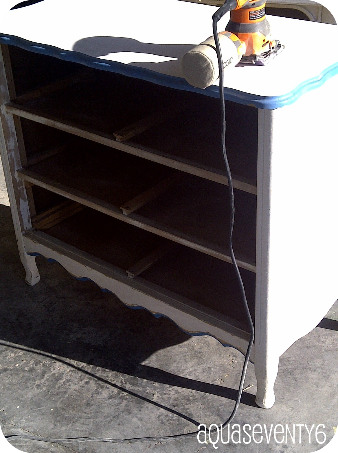 I love finding surprises (of the non-organic kind) when I purchase a dresser, and this one was great. The underside of the drawers were lined with a newspaper from 1996 (which is probably when they first revamped this dresser with the blue paint!)