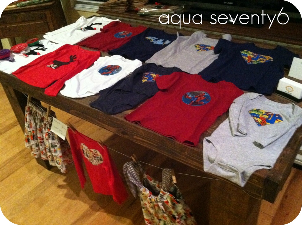 Here is the K.a.i-y.a. Designs table.  The Superhero tees and onesies were a BIG HIT!